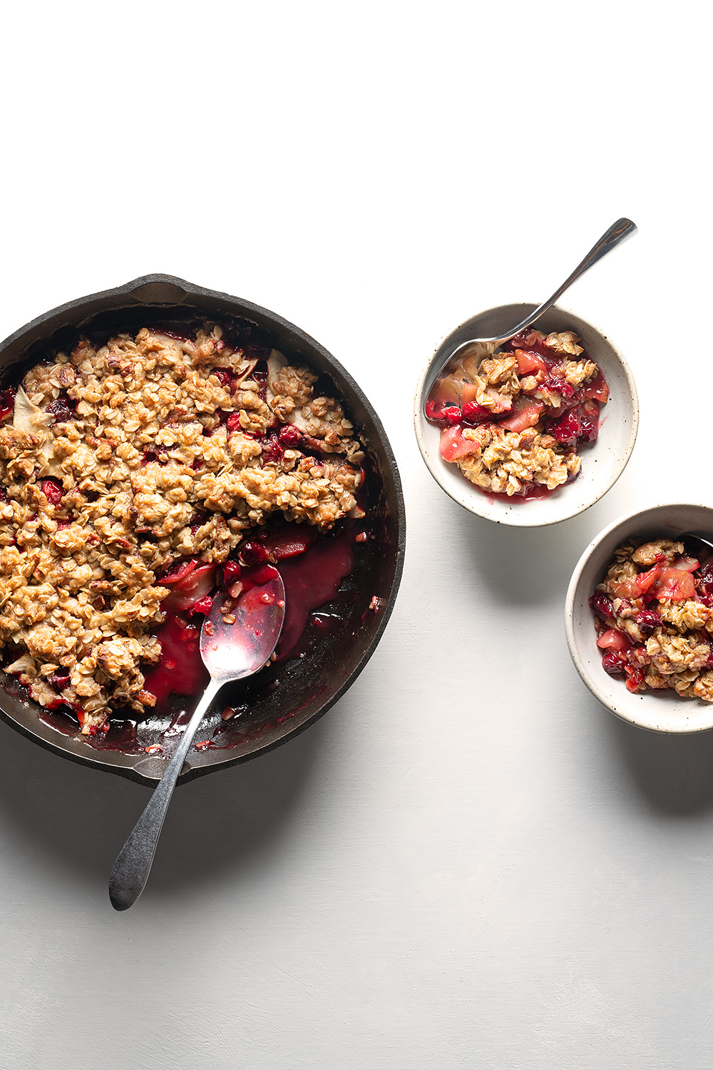 There’s something so satisfying about using fresh cranberries as the weather gets cold. Plenty of other fruits and desserts may scream summer, but nothing can compete with cranberries come winter. Cranberries are not only vibrant addition to a dish, but they’re tart, punchy and refreshing, especially combined with fresh Granny Smith apples in this Cranberry Apple Crisp recipe. And as far as holiday baking goes, what could be better than a crisp? They’re always a rustic crowd-pleaser and easy to pull together, especially this one with a bright, festive pop of cranberry red.