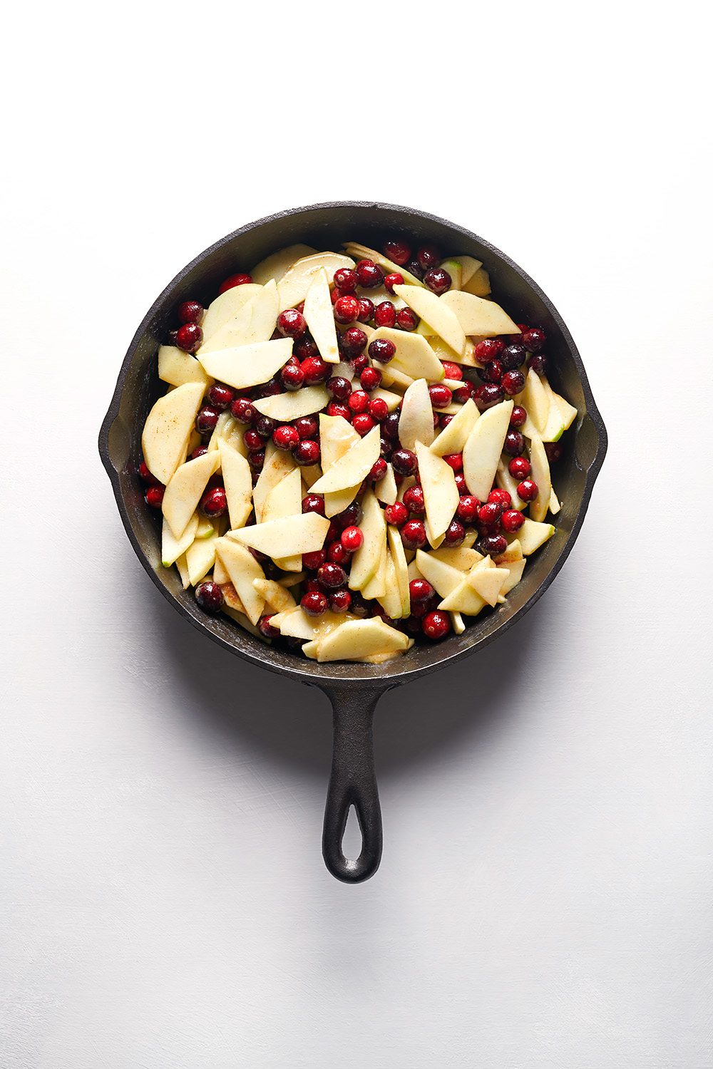photo of Cranberry Apple Crisp in an iron skillet prior to baking