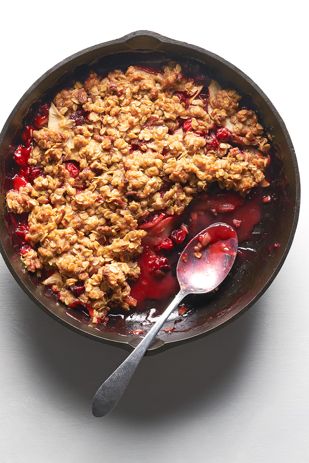 photo of cast iron skillet with Cranberry Apple Crisp recipe